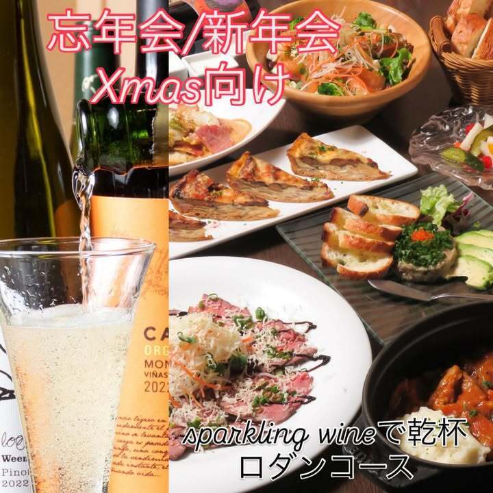 12月1月限定、スパークリングワインも生もOK2.5時間フリードリンク付きのロダンコースをご用意🍾